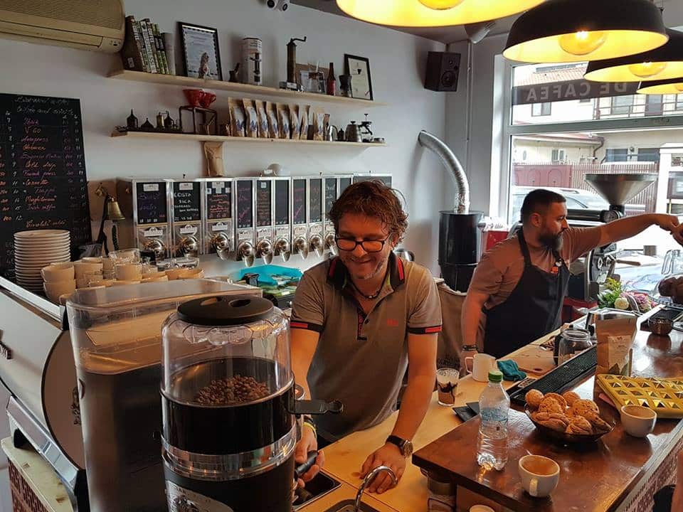 Cum ajungeam in Bucuresti mergeam la prajitorii si cumparam cafea cu care acasa sa experimentez, dupa aproape un an de incercari am gasit Gaggia Classic. A urmat instalarea unui PID si a unei termocuple K, instalarea unui T cu conectori push in si a unui manometru, manufacturarea unui knock box. Dupa alti doi ani a venit randul unei rasnite Mazzer Super Jolly si a unui San Remo Treviso LX ca mai apoi sa urmeze La Spaziale Vivaldi II. In tot acest timp am inceput sa particip ca pasionat de cafea la concursurile organizate de SCAE. Asa s-a intamplat si spre surpriza mea sa castig in 2014 campionatul national de degustat cafea si sa reprezint la Melbourne,Romania. Au urmat jurizarea ca technical judge a etapei regionale de World Barista Chamionship de la Constanta apoi sensory judge la regionala de WBC de la Bucuresti si judge sensory la nationalele WBC din 2015.